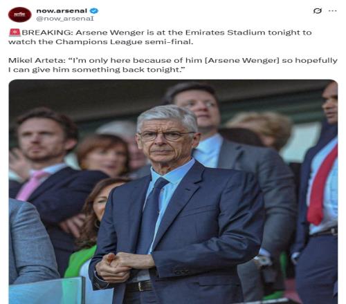 阿尔特塔赛前瞬采谈及温格现场观战:“我来这里全是因为他(阿尔塞纳·温格),所以希望今晚我能回报他。”