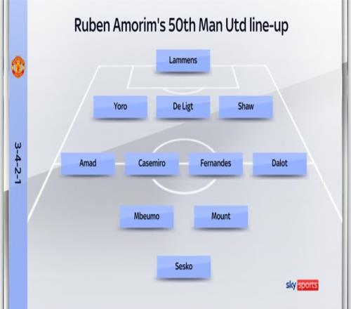 在2比0战胜桑德兰一战,曼联首发阵容包括三名新援,最终,在阿莫林执教的第50场比赛,红魔赢得了比赛。