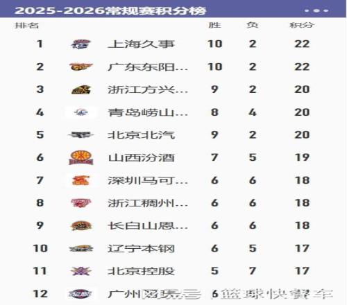 附:CBA积分榜最新排名